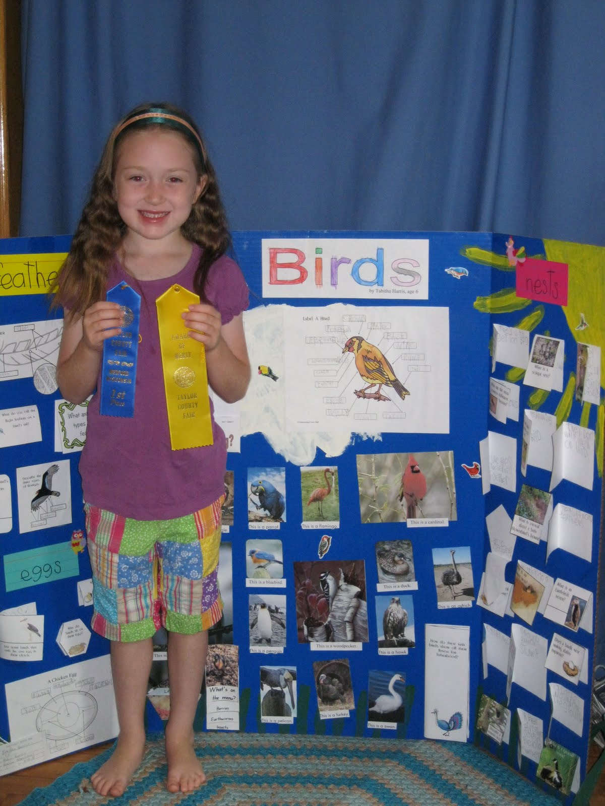 Tabbi won a blue ribbon AND a Merit award on her Birds exhibit at the county fair!